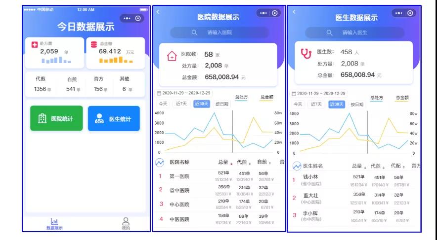 “飛蓬業(yè)務(wù)助手”以微信小程序為載體,只要煎藥中心開通業(yè)務(wù)員賬號,業(yè)務(wù)人員使用手機微信,就可以登錄賬號進行查詢統(tǒng)計。“飛蓬業(yè)務(wù)助手”幫助業(yè)務(wù)人員輕松高效的實現(xiàn)業(yè)務(wù)查詢,不僅為業(yè)務(wù)溝通提供決策依據(jù),還為更好地服務(wù)醫(yī)療機構(gòu)打下基礎(chǔ)!